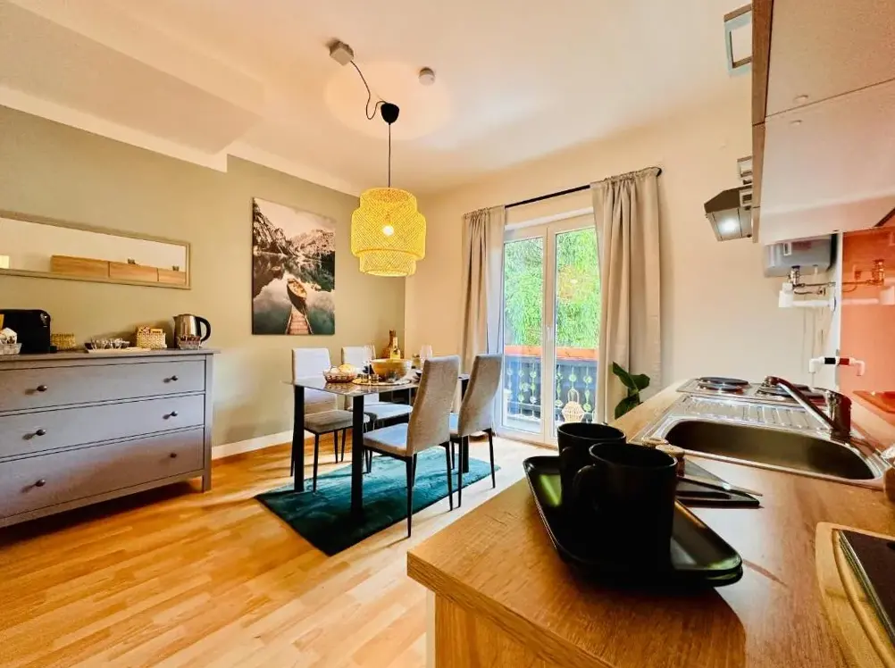 Die Ferienwohnung von Joe liegt zentral in Payerbach-Reichenau, direkt an der Villenstraße 11, Top 7, und bietet eine gemütliche Unterkunft für bis zu zwei Personen. Die Ausstattung entspricht den Erwartungen vieler Gäste: Eine vollwertige Küche mit allen wichtigen Geräten steht zur Verfügung, ebenso frische Bettwäsche und Handtücher. Besonders positiv fällt die Sauberkeit auf, wobei auch das angenehme Raumklima durch natürliche Materialien oder regelmäßige Belüftung hervorgehoben wird. Einige Besucher erwähnen zudem die freundschaftliche Kommunikation mit den Besitzern sowie die ruhige Lage nahe lokalem Einkaufsbedarf und öffentlichen Verkehrsanbindungen wie dem Bahnhof Payerbach Lokalbahn (jeweils rund 200 Meter entfernt). In unmittelbarer Nähe befinden sich weitere Attraktionen wie der Payerbacherhof oder das Naturfreundehaus Knofeleben (etwa drei Kilometer entfernt), während kulturelle Ziele wie Schloss Gloggnitz etwa fünf Kilometer Luftlinie entfernt sind. Für Naturliebhaber lohnt sich ein Spaziergang ins Waldschlössl Schneedörfl (sechshundert Meter) oder zum Stadtpark Graz (dreizehn Kilometer). Der Wiener Flughafen ist rund sechzig acht Kilometer entfernt, was die Anbindung an internationale Verbindungen sicherstellt.